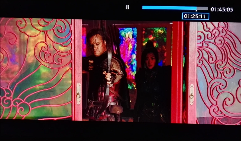 Het VA-paneel levert een zeer goede zwartwaarde, en met de ‘adaptieve backlight controle’ kan je die nog aanzienlijk verbeteren. Een contrast van 4.000:1 en zelfs 7.370:1 met de local dimming geactiveerd is een prima resultaat. Het scherm toont ook uitstekend alle zwartdetail. De vier kolommen van de edge-led zie je slechts met veel moeite en vrij zelden aan het werk. De aanval op Hogwarths uit Harry Potter is zo een extreem voorbeeld waar je soms heel flauw de backlight zijn werk ziet doen. Zelfs bij verduistering leek ons dit niet echt te storen. Er is eigenlijk nauwelijks sprake van halo’s maar in extreme gevallen en als je er echt specifiek op let is er soms iets zichtbaar. In de praktijk is het zo goed als onmerkbaar.