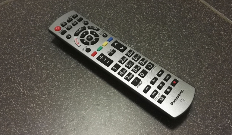 Panasonic kiest nog steeds voor grote, robuste afstandsbedieningen. En zolang je dan toch met een klassieke zapper moet werken, vinden we die keuze excellent. De toetsen zijn groot, duidelijk gelabeld, en de layout is prima. De remote ligt goed in de hand en is niet te zwaar. Hij kreeg een geborsteld metaalkleurige afwerking mee.