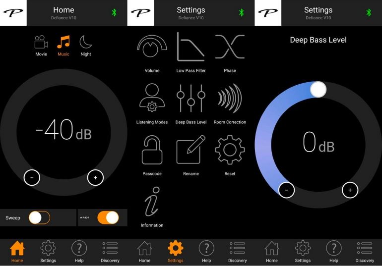 Het meten met ARC doe je via de ARC-app, maar de Defiance V10 bedien je volledig via de Paradigm Subwoofer Control-app. Dit is zeer volledige, perfect afgewerkte app waarmee je de V10 tot in de puntjes regelt. Je kunt bijvoorbeeld ARC in- en uitschakelen, om zo het verschil met je oren vast te stellen. Maar het kan nog zoveel meer: het volume van de sub afregelen, specifiek diepe bassen (20-30 Hz) luider of stiller maken, een low pass-filter instellen, schakelen tussen weergavemodi (film, muziek en nacht) en de fase veranderen. Daar zitten wel wat dingen bij die je meting via de receiver kunnen beïnvloeden, dus het is wel wat nadenken over wat je wanneer juist aanpast. Experimenteren met de Control-app kan echter geen kwaad. Een surroundopstelling moet je uiteindelijk zo tunen dat jij het zelf leuk vindt.