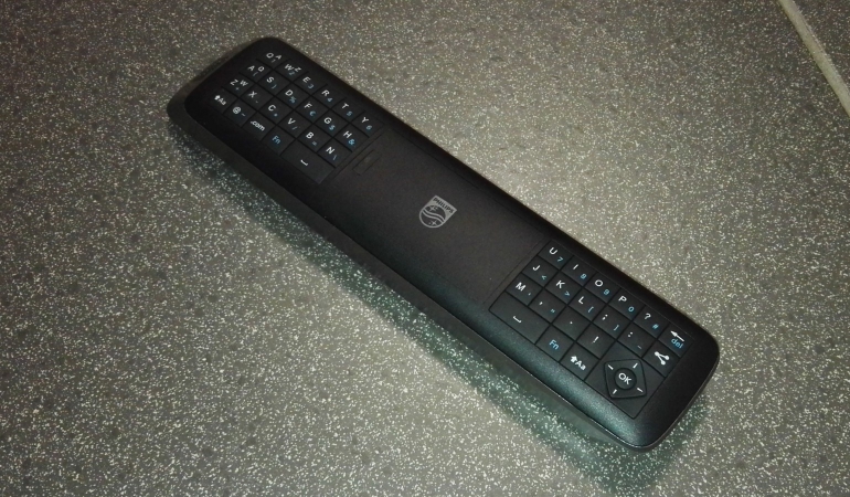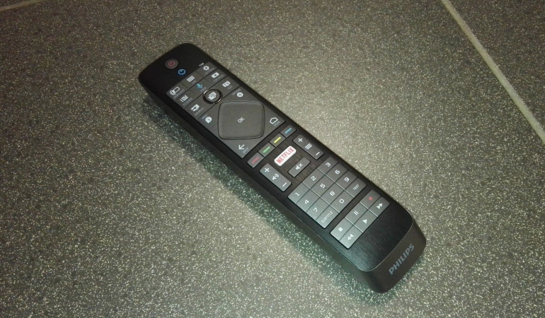 De bijgeleverde afstandsbediening is de klassieke Philips remote voor hun topmodellen. Een stevige zapper die goed in de hand ligt, met een goede layout van de toetsen. De d-pad op deze remote kan normaal gezien dienst doen als touchpad, maar dat lijkt standaard uitgeschakeld te zijn. Dat is een goede beslissing van Philips, deze touchpad creëert enkel verwarring.