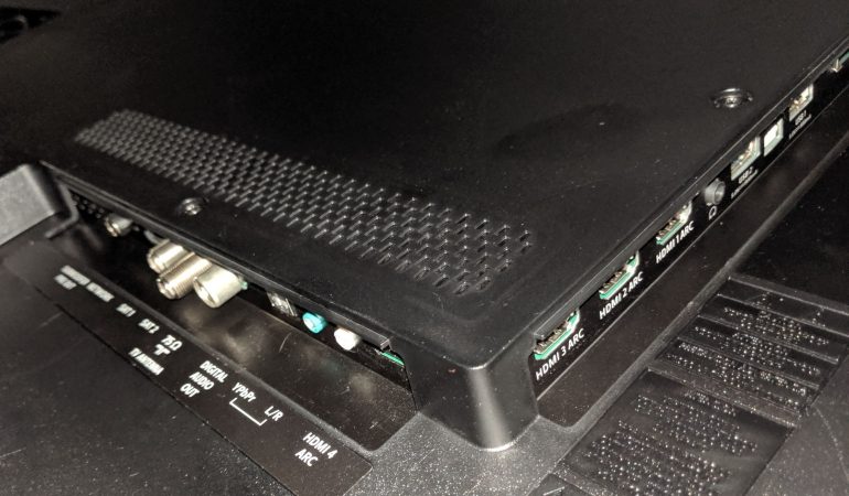 Alle aansluitingen zitten nog op steeds op het scherm. Er is een clip voorzien om de kabels bij elkaar te binden, en je kunt ze via een gat in de centrale stand naar beneden leiden. Het toestel is uitgerust met vier HDMI-aansluitingen, allemaal klaar voor Ultra HD en HDR. Net als de andere Philips modellen dit jaar zijn ze enkel voorzien van ARC en ALLM. Verder zijn er twee usb-aansluitingen, draadloos en bedraad netwerk, en Bluetooth (voor draadloze keyboards en de remote). Naast de hoofdtelefoonuitgang, en digitaal optische uitgang is er ook een subwoofer pre-out. Ideaal als je het echt wil laten donderen.