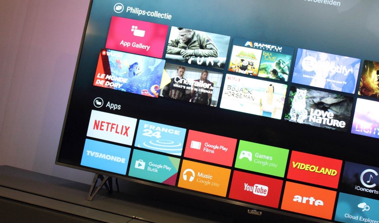 Natuurlijk zijn de bekende Android TV-functies als Google Voice en Cast ook aanwezig waardoor je middels spraak naar content kunt zoeken en media vanaf je tablet of smartphone naar je tv kunt casten (streamen). De apps waarin deze media zich bevinden moeten hier wel ondersteuning voor bieden. De stijl van de interface is typisch Android en biedt een overzichtelijke weergave van interessante content, veelgebruikte apps en handige toepassingen. Helaas is de weergave van deze content volledig bepaald door Google, Philips en je eigen gebruik van de tv. Je kunt dus zelf geen shelves wisselen of apps verder naar voren schuiven. Een app die vaker gebruikt wordt, is prominenter aanwezig. Android TV is alles bij elkaar genomen een prima platform dat veel mensen al kennen en bovendien is de Play Store gevuld met een grote hoeveelheid apps waardoor er voor ieder wat wils is. Alle bekende en belangrijke apps worden al voor je geïnstalleerd, waaronder ook YouTube, Netflix en NPO Gemist. De tv heeft overigens 16GB aan intern opslaggeheugen voor apps en media.
