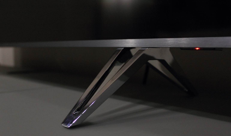 Qua design slaat TP Vision dit jaar de plank helemaal raak, zoals we ook in eerdere reviews van de 2016-modellen aangaven. De nieuwe modellen zijn voorzien van een minimalistisch en strak design, zo ook de 65PUS7601. De tv oogt premium en is voorzien van een slanke (maar met 1cm niet het slankste) bezel met een afwerking van zilverkleurig geborsteld metaal. Verder geen toeters en bellen, alleen een wat fragiel lichtgevend logo aan de onderzijde van het paneel. Je kunt dit lichtgevende logo uitzetten maar we hadden liever gezien dat je het er helemaal af kunt halen. Het voegt niks toe, maakt het uiterlijk iets minder strak en bij ons reviewexemplaar hing het logo er sowieso al half af door het vele verplaatsen en gebruik van de tv.
