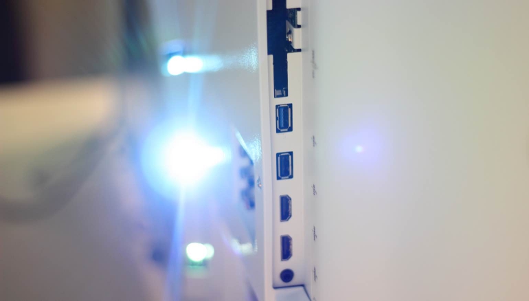 Qua aansluitingen zien we het CI-slot, twee hdmi-poorten en twee usb-poorten naar de zijkant wijzen. Achterop zijn de overige hdmi- en usb-poorten te vinden, welke in een inkeping geplaatst zijn en naar beneden wijzen. Wanneer je de tv aan de muur hangt is het goed om te weten dat de scart- en component-aansluitingen niet veel ruimte voor kabels bieden.