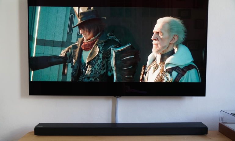 Bij de HW-N650 wordt de Acoustic Beam-guide aangestuurd door meerdere drivers, waardoor effecten en dialogen qua positionering inderdaad vrij goed zitten. Het is deze technologie die er voor zorgt dat zelfs tijdens hectische momenten in ‘Final Fantasy XV: Kingsglaive’ de uitvoerige dialogen verstaanbaar blijven – want ja, dit blijft Japanse anime en een speech afsteken terwijl je met demonen ter grootte van een flatgebouw worstelt is in dit genre doodnormaal. De keerzijde is wel dat de klank uit de HW-N650 vooraan in de kamer blijft hangen. Het komt nog altijd echt uit de tv, met een stukje soundstage die links en rechts verder doorloopt. Is dat slecht? Niet bepaald. Het is niet surround – of een poging tot – maar wel een veel opener, gedetailleerdere weergave dan je van de tv-speakers of een goedkope mini-soundbar krijgt.