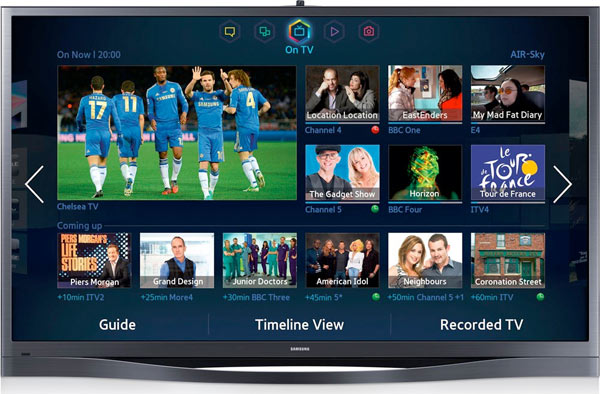 Een functie die ook vorig jaar geïntroduceerd werd is Smart Interaction. Hiermee is de tv niet alleen via de afstandsbediening te bedienen maar ook middels spraak en handgebaren. Samsung zegt voor 2013 de technieken wederom verbeterd te hebben waardoor je meerdere handgebaren kunt gebruiken en spraakherkenning beter werkt wanneer je ‘normaal’ spreekt. Zoals de naam al aangeeft gaat het dus om een ‘slimme’ manier om de tv te bedienen.