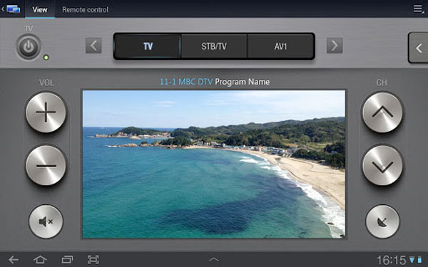 Alsof het bedienen middels twee afstandsbedieningen, gebaren en spraak nog niet genoeg is kun je ook nog kiezen voor een applicatie die je kunt gebruiken op je smartphone of tablet. De Smart View app maakt het mogelijk om met het touchscreen van je mobiele apparaat de tv te bedienen en bevat dan ook de meest belangrijke functies van de normale afstandsbediening, beschikt over een touchpad waarmee je je vinger als cursor kunt gebruiken, is voorzien van een on-screen keyboard voor het invoeren van teksten en biedt toegang tot de applicaties die binnen het Smart tv platform geïnstalleerd zijn. Deze apps kunnen middels de Smart View app opgestart worden.