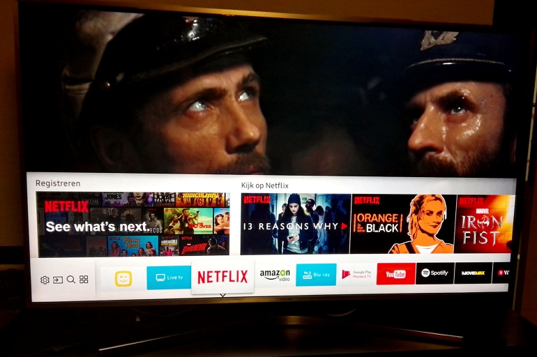 - Extra’s: HDR10+, HLG, WiFi (802.11n) ingebouwd, Tizen Smart Hub, USB/DLNA-mediaspeler, DVB-T/C/S2, CI+-slot, Smart Controller, stemcontrole