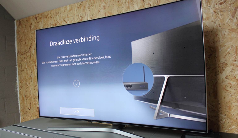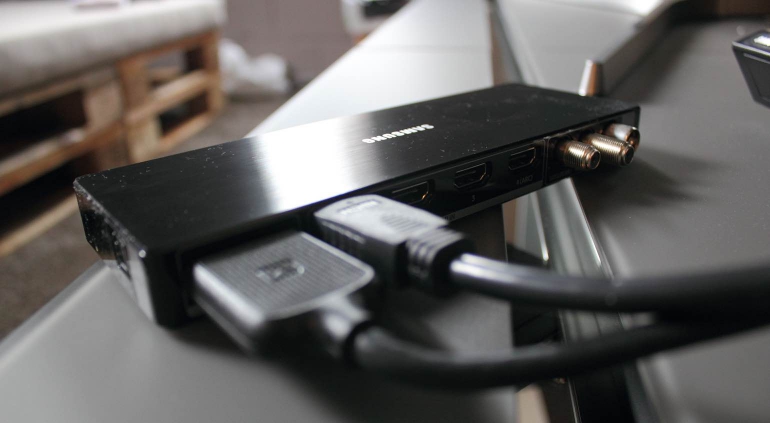 Een trend die we al even bij Samsung terugzien is het ontbreken van de meest gebruikte aansluitingen aan de achterzijde van de tv. In plaats daarvan wordt gebruik gemaakt van de One Connect Box, een accessoire die onder/bij/naast de tv geplaatst kan worden. De tv krijgt alleen nog stroom via een kabel en wordt met één kabel met de One Connect Box verbonden. Zowel deze kabel als de stroomkabel zijn niet heel lang dus houdt hier rekening mee. Er zijn echter toch nog een paar aansluitingen op de tv zelf te vinden, waaronder een usb 2.0-poort, de CI+-module en een ethernetpoort. Op de One Connect Box bevinden zich onder meer vier HDMI 2.0a-poorten met hdcp 2.2, twee usb 2.0-poorten, kabel- en satellietaansluitingen en een optische uitgang.