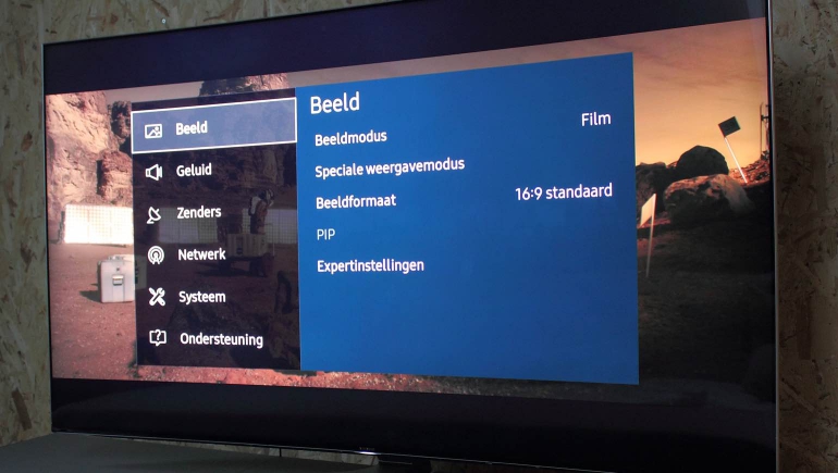 De modus Film is vanuit de doos de beste modus om mee te beginnen. Deze modus biedt een vrij goed gekalibreerd scherm voor kijken in een donkere omgeving. Voor standaard dynamic range content zetten we de achtergrondverlichting niet te hoog, om zo nadelige effecten in donkere delen van het scherm te voorkomen. Digital Clean View voor het verwijderen van ruis e.d. zetten we uit, maar dit kun je bij content van mindere kwaliteit altijd activeren. Samsung noemt local dimming Smart LED en hiermee worden specifieke zones van de achtergrondverlichting onafhankelijk van elkaar in- of uitgeschakeld. We hebben deze optie niet helemaal opengezet aangezien lichtere delen dan iets gedimd worden. Bij HDR-content moet deze optie wel vol openstaan om de maximale helderheid uit het paneel te halen. Daarbij hebben we de optie Auto Motion Plus op ‘Aangepast’ gezet om vervolgens Blur en Judder reductie naar eigen smaak in te stellen. Deze optie zorgt voor een iets soepelere en scherpere weergave van snel bewegende beelden en objecten, zonder hiermee negatieve effecten als bijvoorbeeld ghosting, stottering of een homevideo-effect te introduceren. Meer over de HDR-instellingen vind je verderop in de review.