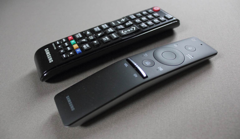 Ook kun je gaan voor de wat meer premium ogende en aanvoelende Smart Controller-afstandsbediening. Deze beschikt ook over een ingebouwde microfoon voor spraakbediening, maar de bewegingsbediening is verdwenen. Dit was een prima functie maar toch zijn ‘pijltjestoetsen’ wat accurater en sneller. Door zijn gebogen vorm en de structuur (met inkepingen) aan de achterzijde ligt deze goed in de hand. Ook de knoppen voelen solide en hoogwaardig aan; je hebt de beschikking over alle knoppen voor het eenvoudige dagelijkse gebruik. Daarbij zijn de nieuwste tv’s die jaar voorzien van de Connect-functie waarmee via HDMI op de One Connect Box aangesloten apparatuur automatisch herkend wordt en de tv de afstandsbediening zo instelt dat deze apparatuur ermee te bedienen is. Dit is een handige functie, zeker wanneer je van al je apparaten puur de basisfuncties gebruikt en zo min mogelijk afstandsbedieningen in het zicht wilt hebben liggen. Naast deze twee opties kun je de tv ook bedienen middels de Smart View-applicatie voor je smartphone of tablet. Hierin vind je een eenvoudige weergave van de fysieke afstandsbediening en heb je de mogelijkheid media met je tv te delen.