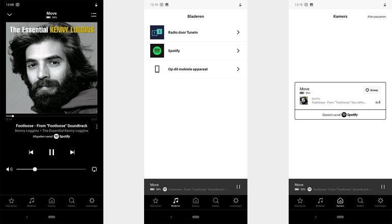 Wanneer je de speaker uitpakt en op z’n houder plaatst, dan kun je meteen beginnen met installeren. Eerst is het van belang dat je de Sonos Move aan je wifinetwerk koppelt. Via de gratis Sonos-applicatie is dit gelukkig zo gepiept. Vervolgens word je gevraagd of je muziekstreamingdiensten en stemassistenten wil koppelen. Ook dit proces spreekt gelukkig voor zich. Je volgt simpelweg de stappen op die op het scherm verschijnen, logt in bij de accounts van de diensten en kunt meteen beginnen met luisteren.