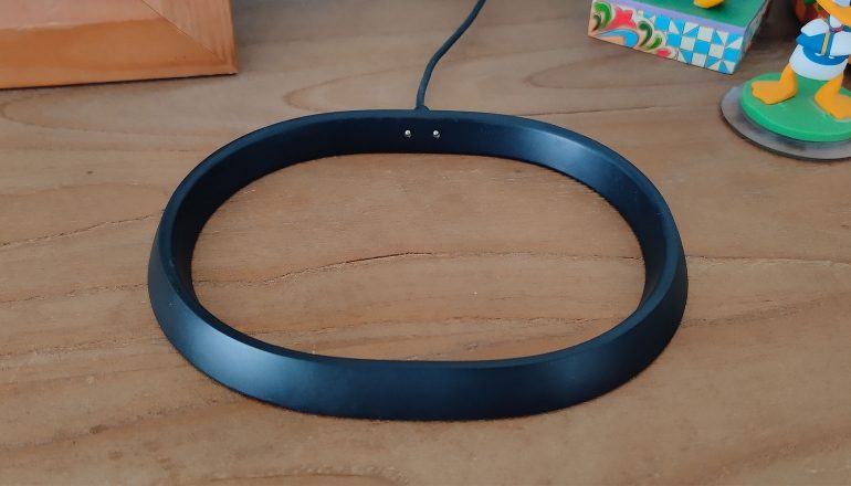 Het design is redelijk uniek voor een Sonos-speaker, maar als we zouden moeten vergelijken dan heeft die nog het meeste weg van een grote Sonos Play:1. De bovenkant is echter veel ronder. De zwarte cilinder is voorzien van twee D-klasse digitale versterkers, een midwoofer en een naar beneden gerichte tweeter. Deze laatste moet zorgen voor een gelijkmatige verspreiding van het geluid. Voorop tref je het logo van Sonos aan. De speaker wordt geleverd met een smalle en strakke houder waarmee je hem kunt opladen.