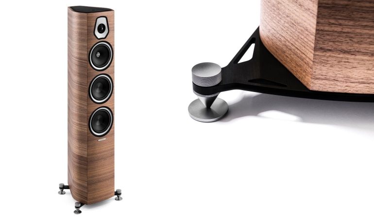De bolle vorm geeft de 3-wegs Sonetto III een heel slanke, elegante uitstraling. Het is iets heel anders dan de rechthoekige luidsprekers die we regelmatig ter test ontvangen. Ze staan dus wat subtieler in de ruimte, minder overheersend. Een mooie eigenschap voor mensen die hun woonkamer nog een beetje huiselijk willen houden, lijkt ons. De Sonetto III-vloerstaander kun je bovendien nagenoeg overal plaatsen. In tegenstelling tot heel veel luidsprekers is er geen reflex-uitgang aan de achterzijde, waardoor een juiste afstand houden tot de muur minder kritisch is. Maar: er is wel een baspoort aan de onderzijde. Je moet dus echt de Sonetto III’s op spikes of een voet plaatsen, want anders klinken ze basarm. Ze gewoon op een vol tapijt parkeren is echt geen goed idee. Dat zou vooral bij muziekweergave in stereo een probleem vormen, want dan speelt de subwoofer in je surroundopstelling normaal gezien niet mee.