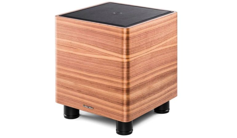 We hadden aanvankelijk de Gravis I-subwoofer niet aangevraagd, maar op vraag van de importeur van Sonus faber namen we hem toch mee in onze test. Daar zijn we achteraf gezien wel heel blij om, want deze kleine subwoofer is best opmerkelijk. Er zijn vier Gravis-subwoofers, maar het verschil zit hem niet enkel in het formaat en vermogen. De Gravis I is met zijn gesloten kast en 12 cm woofer met zeer lange slag die naar de onderkant is gericht een beetje een buitenbeentje. Zowel zijn bescheiden formaat als de driveroriëntatie naar de grond maken hem zeer interessant voor kleinere ruimtes of kamers waarin je niet veel ruimte wil prijsgeven aan een massieve subwoofer. En de Gravis I oogt echt wel heel mooi, ook weer in het bijzonder bij de walnootuitvoering.