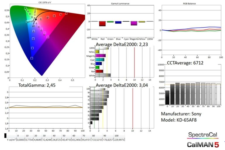 Sony levert een zo goed als perfecte kalibratie in de Bioscoop Pro beeldpreset. De grijsschaal is over de hele lijn een tikje te koel (neigt vaag naar blauw), maar daar zal je in de praktijk nooit iets van merken. De kleurweergave is erg goed, met uitzonderlijk accurate huidskleuren. Het is dan ook een plezier om tv te kijken op dit toestel.