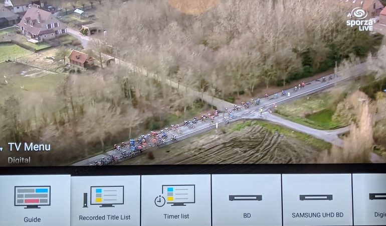 De belangrijkste wijziging in de interface, en de remote, is de ‘tv’ toets. Die toets, onderaan de d-pad, schakelt je rechtstreeks naar de ingebouwde tv-tuners. Kijk je al naar ingebouwde tuners, dan activeert die toets wat vroeger het ‘Discover’ menu was. Dat is een kleine balk onderaan het scherm die eerst tv-functies toont (de tv-gids, opnames, enzovoort), maar verder ook aanbevelingen bevat, en waarin je een lijst met favoriete Android-apps kan maken. Je kunt dat menu niet meer oproepen als je niet naar TV (via de ingebouwde tuners) kijkt, dat vinden we jammer.