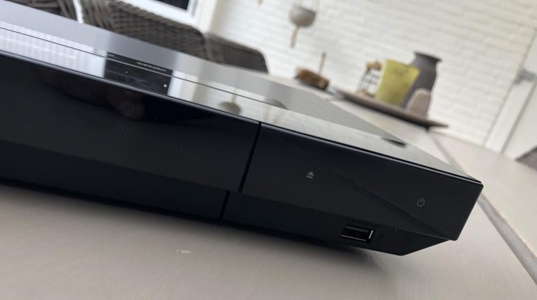 Wat betreft het design zien we eigenlijk geen verschillen met de UBP-X700. Ja, de speler is iets minder diep maar daarmee is alles gezegd. Het is een simplistisch maar strak en compact design. Net als zijn duurdere broer zien we een metalen chassis terug, wat de speler iets meer stevigheid en een premium look and feel geeft. De afwerking is matzwart, met vooraan een glossy zwarte strip. De Ultra HD Blu-ray speler is voorzien van twee knoppen rechts vooraan, power en eject. Een piepklein groen ledje is je enige indicatie dat de speler aanstaat. Al met al is de afwerking prima en hebben we over het design weinig te klagen.