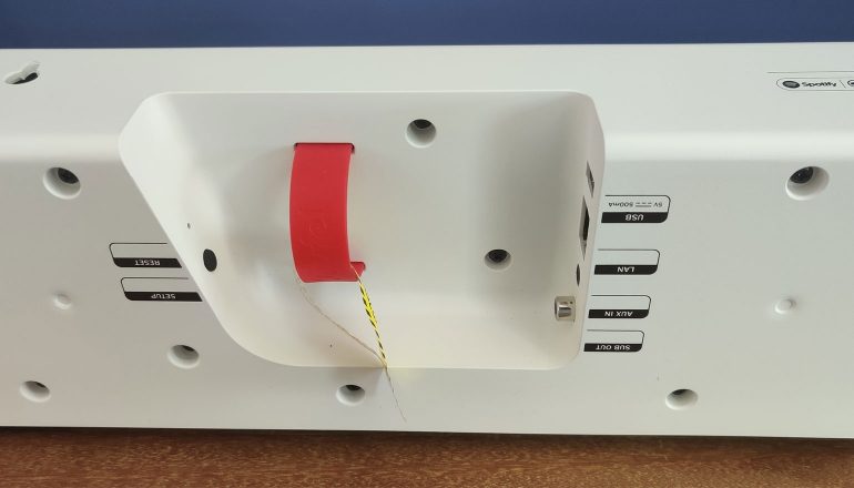 Voor de zekerheid zit er ook een ethernetpoort op de Teufel Cinebar Lux. We kunnen ons voorstellen dat sommige mensen het alsnog prettig vinden om een ethernetkabel te gebruiken voor de koppeling met het internet, omdat de verbinding dat waarschijnlijk betrouwbaarder is. Ook kan er natuurlijk storing zijn op het wifinetwerk, waardoor muziek afspelen onderbroken kan worden, afhankelijk van de plaatsing van de soundbar (geen nood: dit zijn we niet in de praktijk tegengekomen, maar we houden van de hoeveelheid opties).