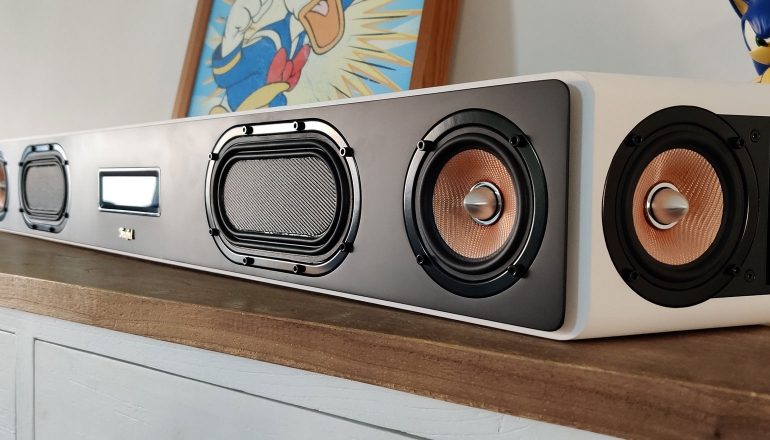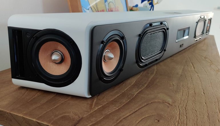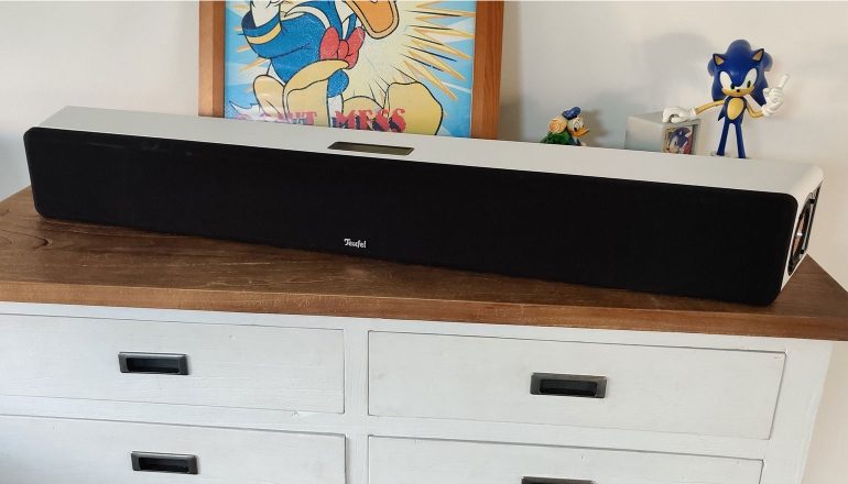 Soundbars heb je in veel verschillende soorten en maten. Meestal zijn ze heel breed en laag, zodat ze onder allerlei televisies passen die op kasten staan. Dat is voor de meest mensen het gemakkelijkst, want het is minder gedoe. Maar Teufel heeft daar lekker maling aan en brengt met de Teufel Cinebar Ultima een hoge soundbar – nee, sounddeck – op de markt die een flink deel van het televisiebeeld bedekt met zijn enorme kast. Dat is inherent aan de soundbar: zorg er dus voor dat je je televisie aan de muur hangt of gehangen hebt.