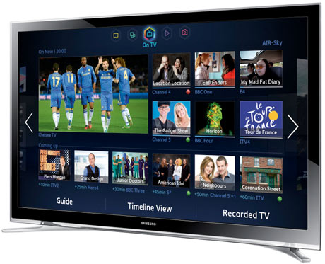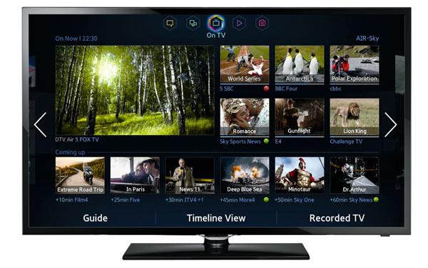 Eén van de belangrijkste verbeteringen in de 2013 HDTV line-up van Samsung is het verbeterde Smart TV platform, ook wel de Samsung Hub genoemd. Samsung heeft er dit jaar voor gekozen om homescreens aan het platform toe te voegen. Deze homescreens hebben elk een eigen categorie zoals Foto & Video, Social Media en Apps. Op de diverse homescreens wordt informatie getoond die voor die categorie interessant is, inclusief suggesties die gebaseerd zijn op je kijkgedrag. De suggesties hebben de naam S-recommendation meegekregen en geven je aanbevelingen voor TV zenders, video on demand films en series, social media websites en je eigen content. Daarnaast is het mogelijk om verschillende gebruikersaccounts met gepersonalieerde homescreens aan te maken.