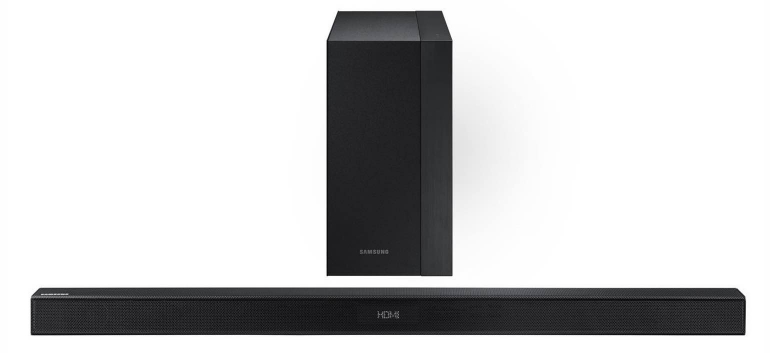 De Samsung HW-K360 heeft een vermogen van 130 Watt en maar twee ingebouwde speakers.