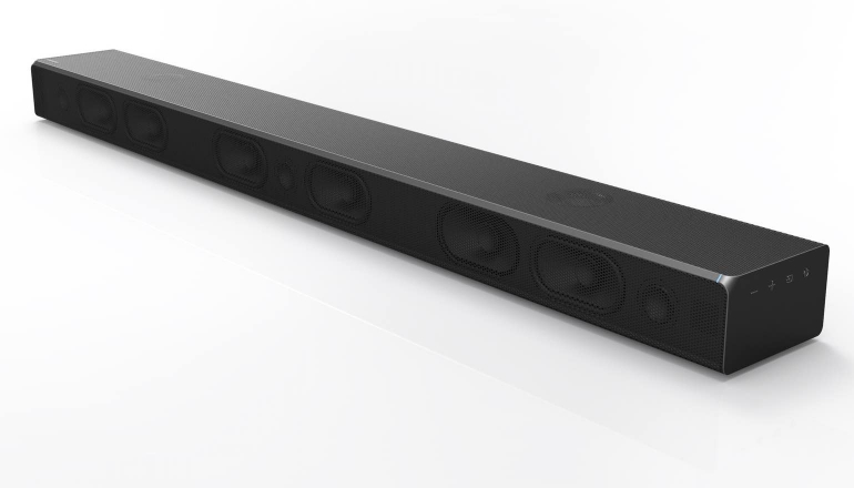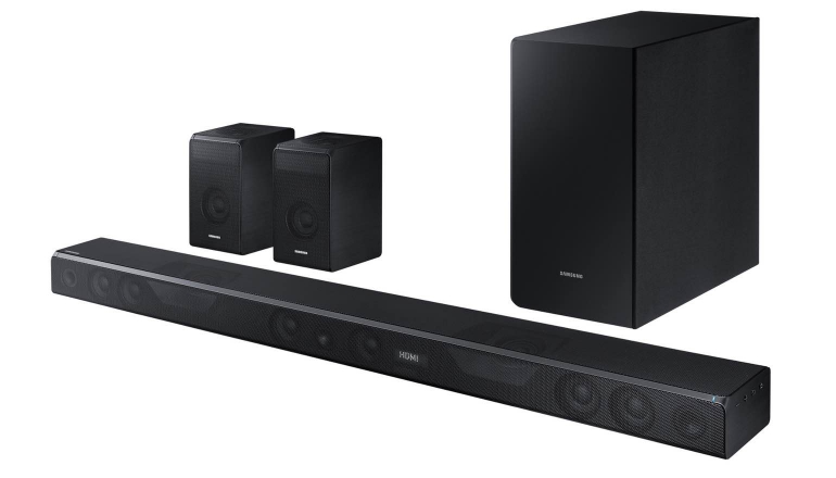 Het topmodel is de HW-MS750, de eerste soundbar van Samsung waarbij de subwoofer in de langwerpige speaker zelf verwerkt zit. De eerder aangekondigde UHQ 32-bit technologie met geavanceerde algoritmen moet ervoor zorgen dat de lage tonen strak en nauwkeurig weergegeven worden. Volgens Samsung levert de MS750 een indrukwekkende surround-ervaring dankzij vernieuwde drivers, waarvan enkele units de audio over het hoofd van de luisteraar moeten sturen. Er is echter geen ondersteuning voor Dolby Atmos aanwezig.
