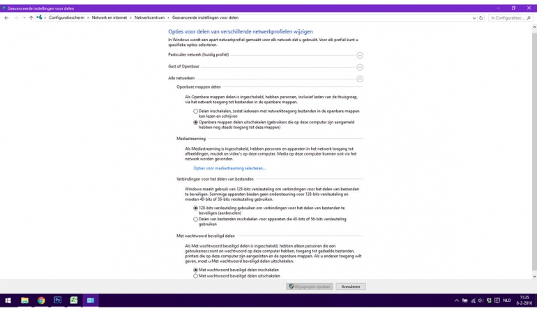 Wanneer je hem hebt geïnstalleerd, vind je de app onder Mijn games en apps (druk op RT op de dashboard) en ga naar Apps. Ga nu net zo lang naar rechts totdat je de app gevonden hebt. Je speelt media af vanaf verschillende bronnen. Je kunt een bestand streamen vanaf je pc door je Xbox One goed te keuren als streamapparaat. Ga daarvoor op je pc naar Configuratiescherm > Netwerk en internet > Netwerkcentrum > Geavanceerde instellingen voor delen. Klik dan op Alle netwerken en daarna Opties voor mediastreaming selecteren.