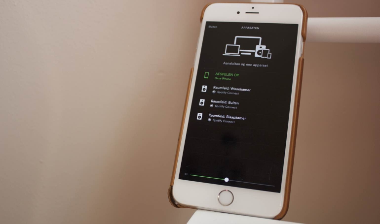 Update: Inmiddels is het via de Raumfeld-app mogelijk een zone aan te maken voor Spotify en deze in de Spotify-app te selecteren om Spotify-muziek over meerdere speakers te laten horen.