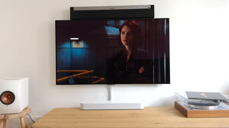 De Beam heeft ondanks zijn kleine formaat een vrij goede laagextensie. Er komt best wel wat bas uit, waardoor films en tv-series vrij goed klinken. De Sonos kan zich zonder twijfel meten met andere compacte soundbars. Maar de toevoeging van de Sub zorgt voor een merkbare verbetering, vooral bij films die inzetten op spektakel. We hebben de Sonos Sub bij wijze van experiment zelfs eens onder de sofa geplaatst, wat een machtig resultaat opleverde. De Sonos Sub is behoorlijk krachtig en kan probleemloos bassen leveren en je zetel aan het vibreren brengen. Standaard zal de Sonos-software de Sub behoorlijk luid en dus aanwezig inregelen, zelfs na de Trueplay-meting. Via de app de subwoofer wat stiller afregelen gaat bijna altijd nodig zijn. Ook de rear-kanalen ga je mogelijk nog wat beter moeten instellen voor het beste resultaat, in het bijzonder als de twee achterspeakers niet op gelijke afstand staan. We missen wel wat de fijnmazige instellingen om op dit vlak aan finetuning te doen. Een klassieke surroundopstelling met AV-receiver heeft hier toch als voordeel dat een kalibratiesysteem dit alles voor je doet, maar dan zit je wel met kabels doorheen de kamer.