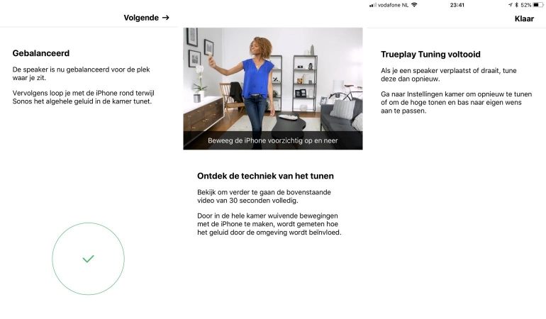 We merkten snel dat de Beam zowel alleen als in een surroundopstelling veel beter presteert na de Trueplay-meting. Het is dus echt een aanrader om te doen, zelfs al vind je dat rondzwaaien met een iPhone of iPad maar een gekke bedoening. We snappen trouwens wel waarom Trueplay technisch niet met een Android-apparaat kan, maar vinden het niettemin spijtig. Ooit beweerde Sonos dat ze mogelijk toch ondersteuning voor Trueplay-metingen zou brengen naar bepaalde goedverkopende Android-smartphones. Dat lijkt niet te gebeuren.
