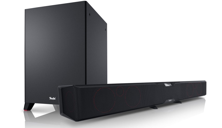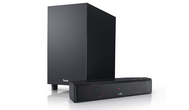 De Teufel Cinebar One is de meest compacte soundbar van het Duitse bedrijf. Dit 2.0-kanaals model kan met 6.5-inch draadloze subwoofer (One+) en zonder subwoofer (One) gekocht worden. De speaker is voorzien van vier tweeters met elk een eigen versterker. De Dynamore Ultra-technologie met side firing-luidspreker moet zorgen voor het virtuele surround sound. De soundbar beschikt over een Dolby Digital decoder, bluetooth 4.0 met aptX, HDMI met CEC en ARC, een line-in aansluiting, een optische digitale ingang en diverse geluidsmodi. Je kunt de speaker aan de wand monteren of voor de tv plaatsen.