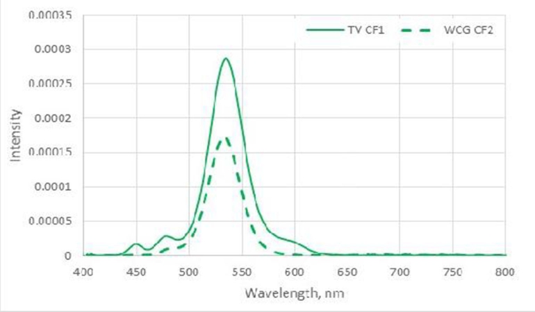 De tweede is een QD-kleurfilter (de werking daarvan is besproken in ons oorspronkelijk artikel over quantum dots). Deze oplossing zou een veel hogere luminantie genereren (met hetzelfde energieverbruik als vandaag), of zou de huidige luminantie kunnen leveren met een veel lager energieverbruik. De oplossing heeft bovendien een veel bredere kijkhoek.