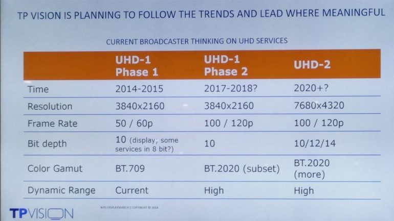 Deze foto, die we maakten op een presentatie van TP Vision in 2014 toont duidelijke de roadmap die broadcasters toen (en eigenlijk al een paar jaar daarvoor) al in gedachte hadden.