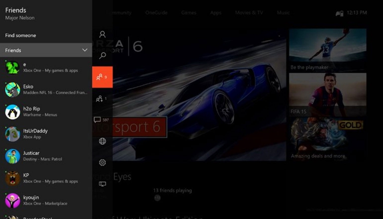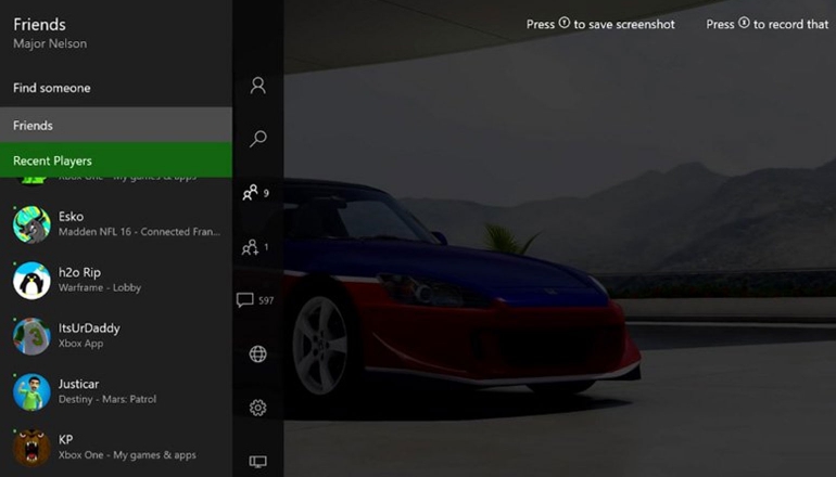 - Verbetering aan de vriendensectie: Wanneer je het hamburgermenu opent, dan kun je je vrienden sorteren op het standaard aanzicht of op recente spelers; dat is gelijk aan hoe het nu ook nog gaat. Maar omdat Windows 10 op Xbox One zo snel werkt, is dit de snelste manier om informatie over de spelers waarmee je speelt op te vragen.