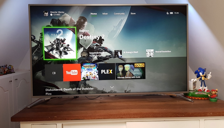 Wanneer je in de herfst de Fall Creators Update voor Xbox One, Xbox One S of Xbox One X (vanaf november) downloadt, dan zul je meteen zien dat het dashboard een ander uiterlijk gekregen heeft. De interface is behoorlijk aangepast, maar werkt in de kern nog steeds hetzelfde. De grootste knop is de game of app die je het laatst gespeeld hebt. Die heeft tevens invloed op de achtergrond van je dashboard. Speel je bijvoorbeeld Destiny 2, dan zal je een achtergrond van die game te zien krijgen, achter alle knoppen op het thuisscherm.
