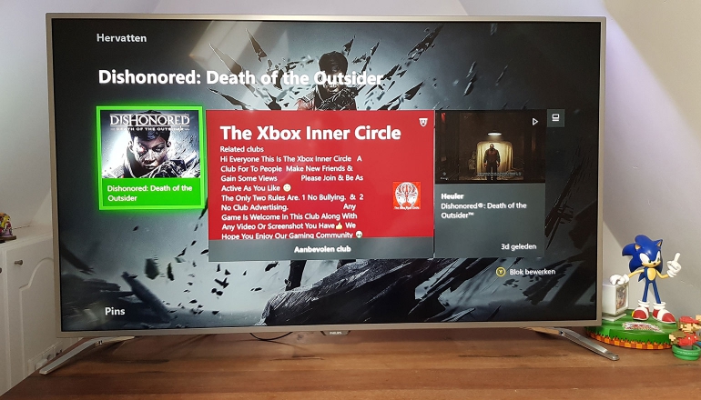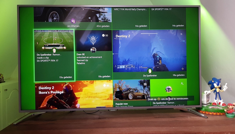 De tab op het thuisscherm Community heeft ook een compleet andere indeling gekregen. Het is er nu veel drukker, met achievements, video’s, screenshots en meer informatie van en over je vrienden, in blokken met verschillende formaten. Wanneer je nu op een achievement of mediabericht klikt, dan zal die content op het volledige scherm worden weergeven. Je bekijkt de content dus niet eerst in een kleiner scherm, om dat schermpje vervolgens te vergroten. Nee, nu opent de Xbox de content meteen schermvullend.