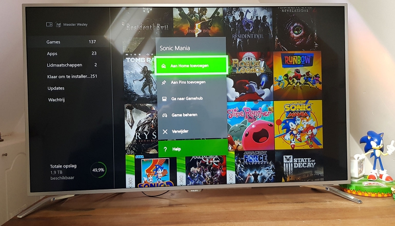 Een game vastmaken aan Home, dus niet vastpinnen, doe je door een game te selecteren bij Games & Apps. Druk op de knop met drie streepjes en kies voor de optie waarmee je het spel kunt vastmaken aan je thuisscherm. Vervolgens zal de Xbox One een pagina aanmaken op het thuisscherm met daarop informatie over het spel. Links kun je de game direct opstarten, terwijl je rechts info over de game vindt en misschien ook wel informatie over je vrienden (mits ze die game spelen). Ook tref je hier screenshots en video’s aan.