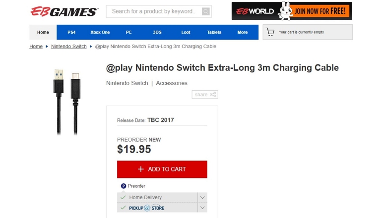 De Nintendo Switch krijgt waarschijnlijk een usb-type-c-poort voor het opladen van het systeem. Dat suggereert een Australische gamewinkel, toen die drie accessoires voor de Switch op zijn site had zijn van het merk @play. Hoewel de winkel snel de producten van de site haalde, wisten andere website wel snel een screenshot te maken van de accessoires, zoals een ‘Extra-Long 3M Charging Cable’. Op de foto is een usb-type-c-kabel te zien. Daarnaast schijnen de prototypes van de spelcomputer ook usb-type-c te gebruiken.