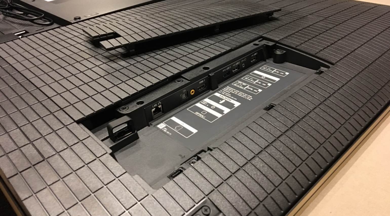 De Sony ZD9-modellen beschikken over voldoende aansluitingen om al je apparaten kwijt te kunnen. Op de achterzijde zien we drie verwijderbare panelen terug waarachter zich de aansluiten bevinden. Vanuit deze secties kunnen de kabels achter de voet weggeleid worden zodat je ze niet in het zicht hebt. We zien onder meer vier hdmi-ingangen (waarvan twee met hdmi 2.0a), drie usb-poorten, een ethernetpoort, een CI+-module en een SCART-aansluiting (een van de weinige nog) terug. Voor draadloze communicatie zijn WiFi en bluetooth aanwezig. Alle aansluitingen zijn eenvoudig bereikbaar en ver genoeg naar binnen geplaatst zodat je geen kabels of connectoren ziet.