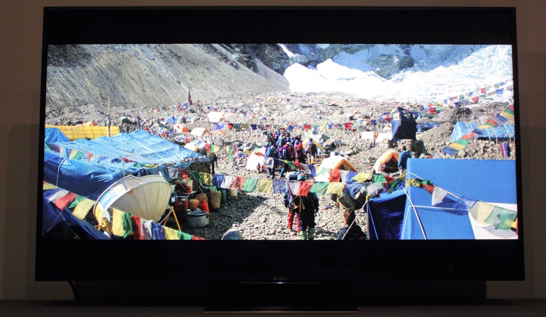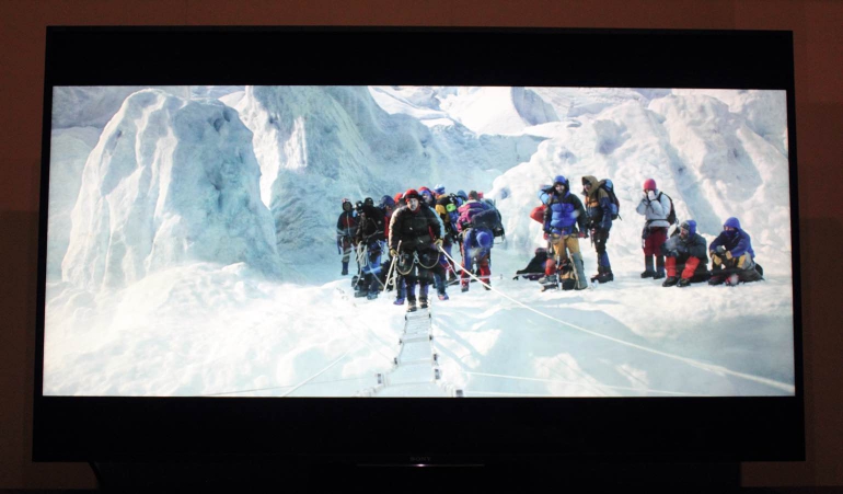 Zoals je wellicht eerder in onze reviews gelezen hebt zijn we groot fan van HDR en hopen we ook dat het aanbod snel toeneemt. De film Everest is met zijn intens witte sneeuw, felle zon en heldere reflecties de ultieme testfilm. De Sony KD-65ZD9 weet er ook in HDR een prachtig plaatje van te maken. Donkere delen van het scherm blijven strak donker/zwart, terwijl de echt heldere delen (een zon, een maan, etc.) bijzonder fel zijn. Van clipping (verlies van detail in heldere delen) is nauwelijks sprake waardoor ook felle delen van het scherm met veel detail weergegeven worden. Halo-effecten worden bij een hogere helderheid wel iets duidelijker, met name bij lichte teksten die op een donkere achtergrond te zien zijn. Op dit vlak zijn de oled tv’s (waaronder de LG E6V-serie) toch net wat verder. De piekhelderheid van deze modellen ligt lager maar doordat elke pixel individueel uitgeschakeld of gedimd kan worden, en dus diep zwart blijft, ligt het contrast hoger. Maar, alles bij elkaar genomen biedt de Sony KD-65ZD9 een zeer indrukwekkende HDR-ervaring, met een hoog contrast, een goede local dimming-techniek, een hoge helderheid en bijzonder veel detail.