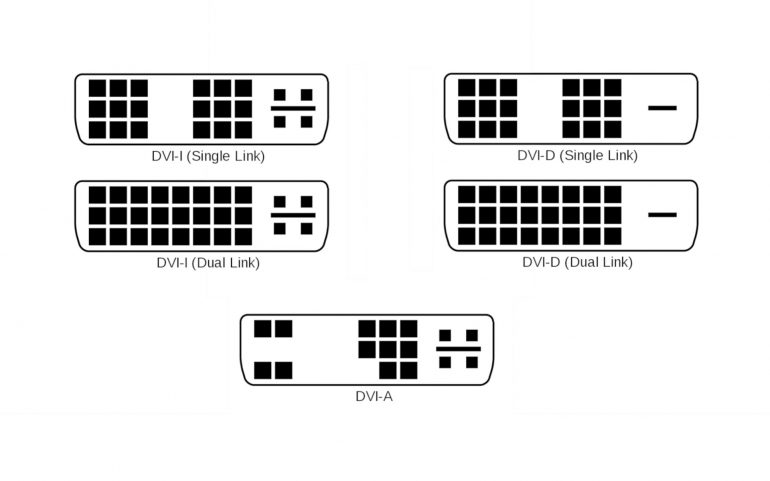 DVI gebruikt helaas wel verschillende versies van de connector. Zo onderscheiden we DVI-D dat enkel digitale signalen transporteert, DVI-A dat enkel analoge signalen transporteert en DVI-I dat beiden kan. Bovendien kan een DVI-kabel ook nog single link of dual link zijn, naarmate de behoefte aan bandbreedte. Een single link kabel volstaat om een 1080p-signaal te transporteren, voor hogere resoluties of voor hogere framerates (120fps) moet je dual link kabels gebruiken.