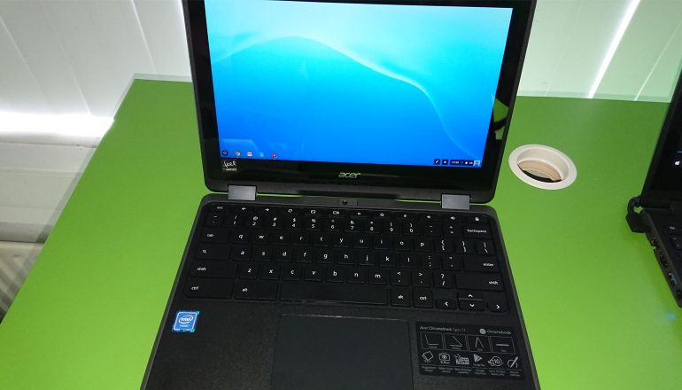 Ook de Acer Chromebook Spin 11 is bedoeld voor de educatieve markt. Daarom is ook deze convertible voorzien van een stevige rubberen rand, waardoor die goed tegen een stootje kan. In tegenstelling tot de TravelMate Spin B1 draait de Spin 11 op het Chrome OS. Daardoor wordt het apparaat waarschijnlijk een goedkoper alternatief voor alle Windows-laptops, omdat het Chrome OS zich in de laatste maanden positief heeft ontwikkeld en tegenwoordig ook wordt gezien als een prima besturingssysteem.