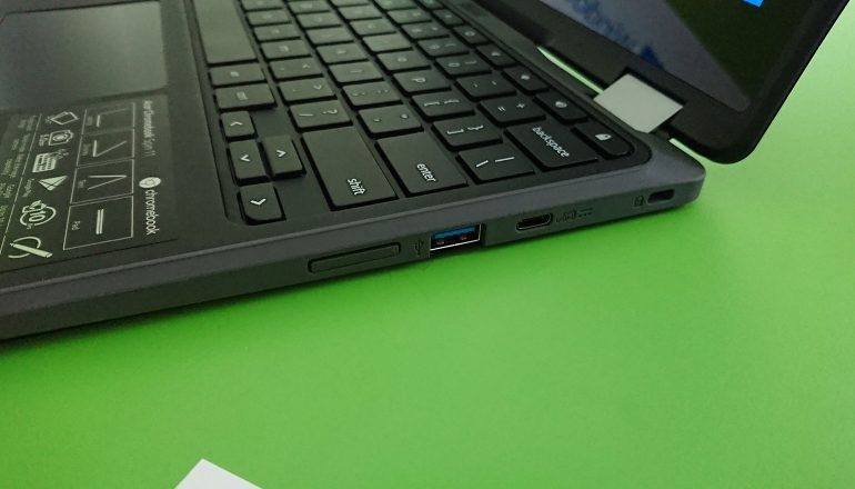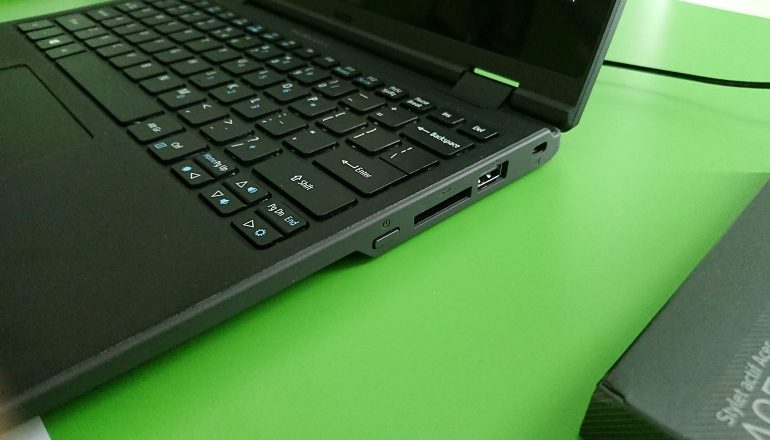 Zo is er links een ethernet-, hdmi- en usb-poort te vinden en treffen we aan de rechterkant nog een usb-poort aan, evenals een geheugenkaartlezer. Zo kun je je oudere accessoires gewoon blijven gebruiken, waardoor je daar geen geld in hoeft te investeren. Met zijn 11,6″-scherm blijft de convertible nog best compact, al zijn er natuurlijk veel slankere modellen op de markt. Maar omdat Acer zich richt op studenten, is dit model bewust dik en stevig gemaakt, waardoor het niet meteen erg is als je hem eens op de grond laat vallen.