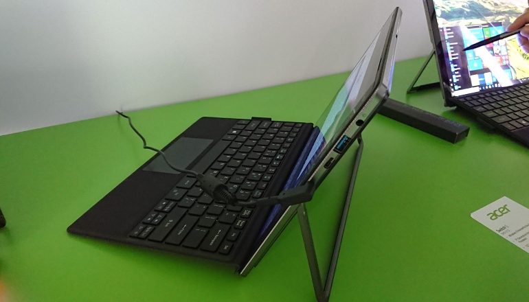 De Acer Switch 5 wordt omschreven als de opvolger van de eerder genoemde Acer Switch Alpha 12 (om het even overzichtelijk te houden). Deze tablet heeft eveneens een scherm van 12,2-inch, maar heeft wel een hogere resolutie, namelijk 2.160 bij 1.440 pixels. Onder de motorkap kan maximaal een Intel Core i7-processor van de zevende generatie zitten, die passief gekoeld wordt door het LiquidLoop-koelsysteem. Ook zien we 256 of 512 GB aan opslaggeheugen en maximaal 8 GB aan werkgeheugen terug. Behoorlijke specs dus.