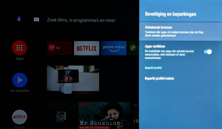 NL diensten: NOS, VideoLand. Aan een Android tv versie van NLZiet wordt gewerkt. Pathe Thuis zou beschikbaar moeten zijn, maar vonden we niet in de store terug, mogelijk omdat we in België testen.