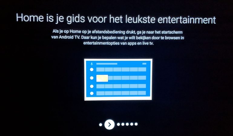 Tot slot krijg je een rondleiding langs de nieuwe functies van Android TV. In zes schermen krijg je de belangrijkste zaken uitgelegd. Houd je smartphone bij de hand, Android heeft een algemene tv-remote app die best handig is.