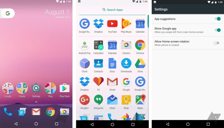 - Pixel Launcher – swipe omhoog voor alle apps, nieuwe zoekbox, widget voor datum en tijd op homescherm
