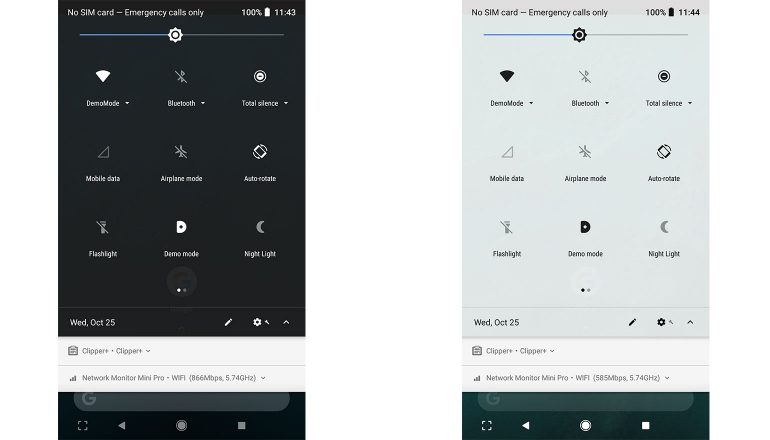 Android 8.1: systeem kiest automatisch voor donker of licht menu