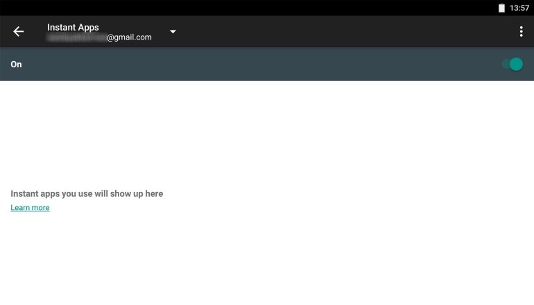 - Tap op Instant Apps en schuif de toggle rechts bovenin naar rechts om de dienst te activeren.